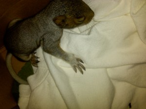 We googled “baby squirrels” and found a few websites that showed squirrels of varying ages. We had in our home a three-week-old orphaned baby squirrel.