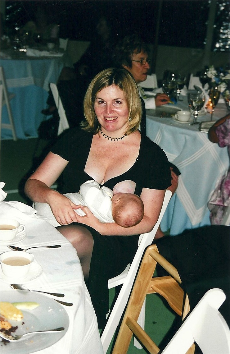 Katherine, a new mom, called me to discuss her milk supply. She was concerned with keeping up the demand of her baby. Then she asked me other breastfeeding questions. She was not sure how to nurse Sadie outside of her house. She thought it was because she needed her “special pillow.” The truth is she doesn’t know how because few women really breastfeed in public anymore. There was an orangutan at a zoo in Boston. The zookeepers mated her and she became pregnant. Ms. Orangutan had been raised in captivity. She had not lived among sister orangutans so she did not know what to do with her baby when he was born – the baby orangutan died. The second time around the zookeepers asked volunteers from the local chapter of La Leche League to nurse their babies in front of the primate. When the second baby was born the primate placed her baby in her arms backwards but with some guidance from the staff quickly learned to feed and care for her baby. This is how we learn. We observe the behavior of others. When I was a pregnant with my first baby I had met a few breastfeeding mothers along the way including my sister-in-law. I took a breastfeeding class to learn as much as I could before my baby arrived. When Phoebe was born she was placed in my arms and we nursed for the first time for about twenty minutes. And then we nursed – a lot. I felt awkward. I fumbled to unlatch my nursing bras, some of which were too big, some of which were too tight and one that broke. I bought dowdy nursing clothes. I wore button shirts. I still felt awkward. Phoebe was born on a hot summer day. I am a gregarious person. I am best chatting with a group. As a new mother I felt isolated. I hungered for company That summer we had a few social events – a wedding, an engagement party – “showing off our baby” weekends. I noticed that wherever I went the host always had a “nice air conditioned room with a comfy chair” for me to go and nurse Phoebe. And Phoebe nursed all the time. I was even isolated in my socialization. Sandra, my brother’s wife had recommended attending a La Leche League meeting. The meetings had been a great resource for her as a new mom. I found the meetings helpful but even more important were the lunch dates after the meetings. Phoebe and I joined other nursing moms monthly at the Thruway Diner. We always sat at the big round table in the center of the bustling eatery. Six to ten moms and their babies smack in the middle of business suits, ties, skirts and silk blouses. This is where I learned to nurse out and about with confidence. I watched the moms with older babies. I saw unspoken communication between them. I saw how a baby might start to wiggle a bit and like Houdini the mom had unhooked her bra, lifted her shirt and latched the baby in seconds flat. It looked effortless and it also looked like there was a baby in her arms – no breasts hanging out, no cover ups – simply a babe in arms. I wanted to be like them. I wanted to feel that assured. I wanted to look that smooth and at ease. As I expressed my envy at their mastery they all assured me that they too had been awkward. They encouraged me to nurse Phoebe in front of a mirror and I did. I grew confident in my ability to nurse Phoebe whenever she needed. At the next social gathering Phoebe started rooting and I said to Rob, “I am going to nurse her here.” He put his arm around me and kept talking. From there I declined offers for the “air conditioned room with a comfy chair.” I eventually became a La Leche League leader and then lactation consultant. I gave birth to two more children. I nursed them all over the place: the bus, the subway, Saks, Barnes & Noble, fancy restaurants, diners. Usually no one except other mother’s knew I was nursing. I was not hiding behind anything just nursing my babies. When my youngest child, Finn, was about 6 months old I was at the pediatrician’s office for a well check up. In the waiting area were two new moms discussing a new product they had just discovered – “The Hooter Hider” one of them said in an embarrassed giggle. Then I started seeing breastfeeding covers everywhere. This was the antithesis of the Thruway Diner experience. A baby begins to fuss, the mother searches her bag for the cover, the baby fusses more, the mother opens the cover, ties it around her, by now the baby is wailing, the mom fumbles with the cover and the baby, the baby kicks about, perhaps not wishing to be under a tent. Now everyone knows what is going on under the fabric. How challenging this makes everything. Breastfeeding by its very nature is designed to be simple. We have complicated it. We have made it shameful and difficult. Like the orangutan new moms today have no real life positive breastfeeding images. Courtney, another new mom, asked me a question about nursing in public. I asked her, “ Do you have any friends who are breastfeeding?” “Yes,” she replied. “So go hang out with them, learn from them,” I offered. “They use a cover or expressed milk in a bottle.” she answered. “Go to the thruway diner!!!” I want to scream. But that was another time, another place. I walk down the street and look into the windows of Victoria’s Secret, American Apparel and Abercrombie + Fitch – this is our provocative world yet we must put a tent around us to feed our babies? We flaunt our breasts to sell products. Breasts are sexy – until they become functional. Then we hide them. A few years ago I could spot a breastfeeding mom because I had a keen eye and I had been there. Nowadays anyone can tell a breastfeeding mom – she is the one hiding behind the overpriced piece of calico.