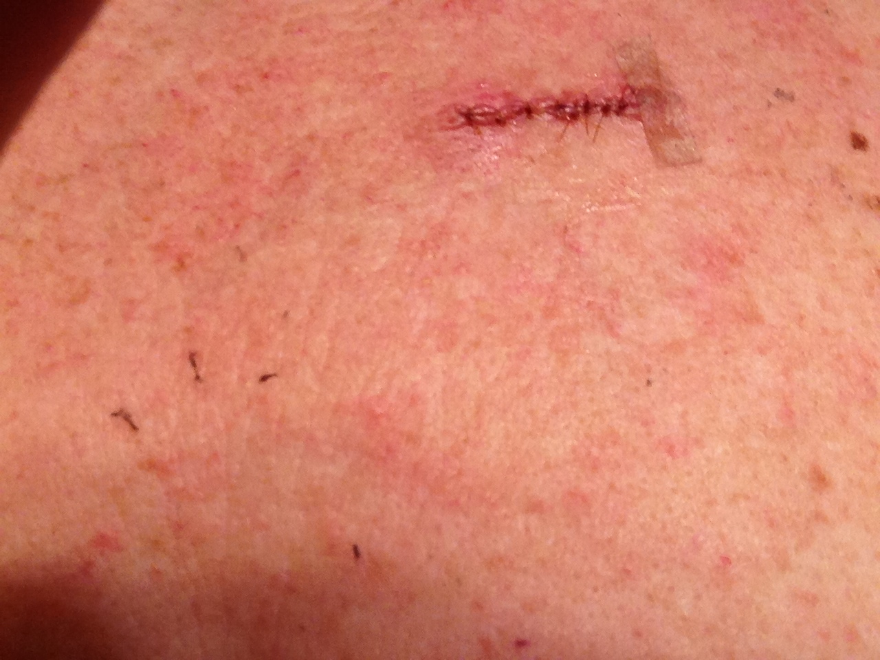 Speaking of tanning I have been cursed with a skin cancer gene. If you look closely at my chest and face you will see that they are marked up like old pair of jeans that have been reworked, stitches here and there, threadbare in some spots. I am a dermatologist’s dream. I don’t have bad cancer, just basel and squamous cells, moles, things that need to be removed here and there but are nothing lethal. I am a steady customer.